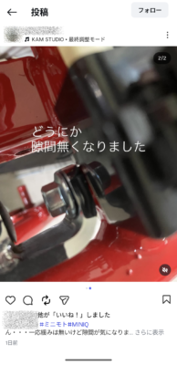 これはミニモト社公式インスタに上がっているブラック/レッド仕様のミニQのシート下にある電装系を写している画像ですが、イグニッションコイルの取付部分が、オーバートルクで締め付けられているせいか、はたまたコイル自体の問題なのか変形しています 苦笑