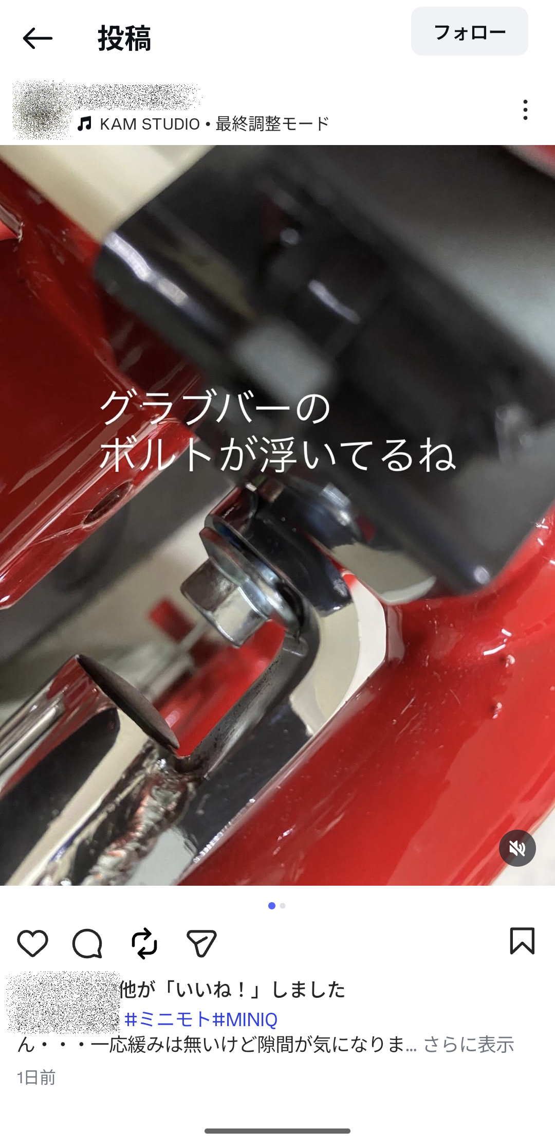 ミニQにはメッキグラブバーが装着されていますが、こんな物すらまともに固定出来ていないらしいです 呆